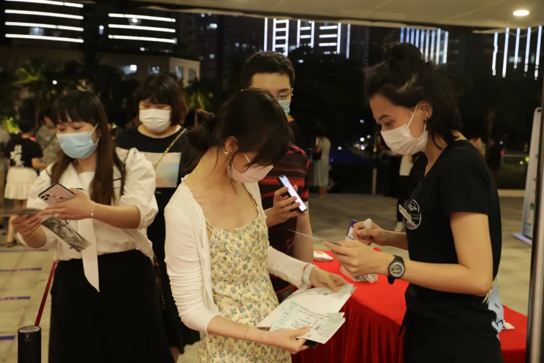 夜幕降临,观众们戴好口罩,扫验健康码、测体温、过安检,陆续进场。剧场工作人员严格查验每一位观众的信息,“人票一致”才能进入剧院。海口湾演艺中心一共有1397个座位,根据国家文化和旅游部下发的《剧院等演出场所恢复开放疫情防控措施指南》要求,此次演出剧院限制人流,上座率控制在50%以内,观众相互间隔一米以上,剧院洗手间、化妆间等区域都配备有消毒用品,还有每日消毒记录。