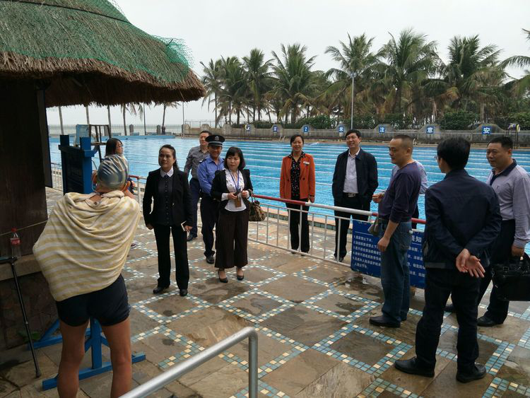考察组一行重点对中心广场、滨海浴场、游客中心、旅游公厕、停车场、温泉亲水乐园进行检查,金艳总经理向考察组介绍了海滩公司的基本情况。考察组对假日海滩的景区秩序、经营管理、安全生产、旅游服务、环境卫生给予肯定。当考察组行至温泉亲水乐园标准池时,偶遇十多年来一直坚持来游泳的常客海南大学教授邓先生,邓先生表示:他去过日本,韩国的温泉,假日海滩的温泉亲水乐园的环境和服务绝对是最棒的。在听取市民评价和实地考察后,考察组对亲水乐园的管理、服务、环境、水质表示赞赏,对整个景区的环境给予较高评价。