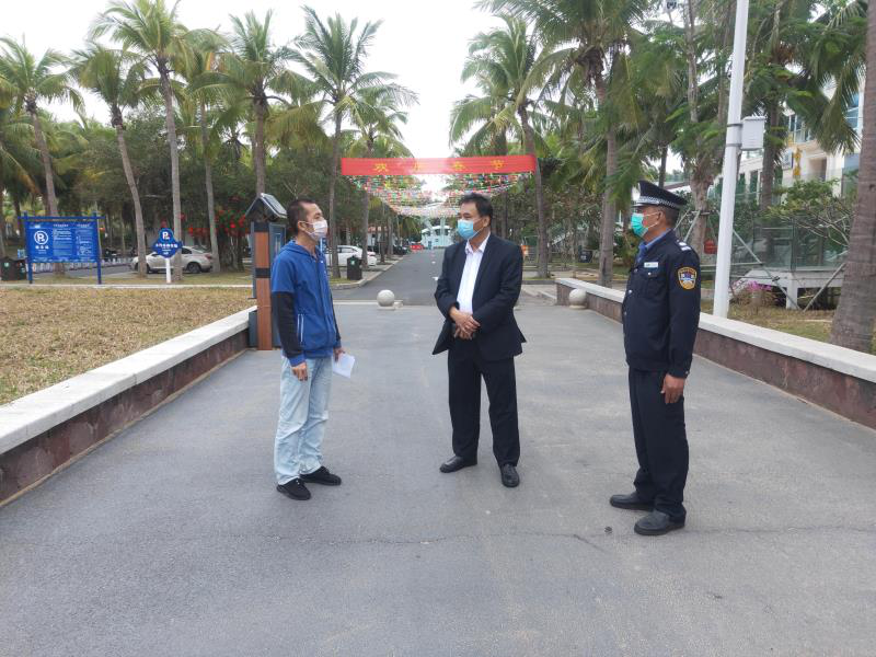 2月8日下午17:30,秀英区委常委、常务副区长吴腾越到假日海滩,督导检查禁止燃放烟花爆竹的监管工作及疫情防控工作时强调,假日海滩景区不能掉以轻心,严管严控,人员要到位,措施要到位,坚决落实执行两项工作。海滩公司总经理助理陈鹏陪同并汇报了工作部署情况。在听取了有关湖北籍“房车”(车牌号:鄂LE5J65)及4名人员滞留、起居在西秀海滩停车场的情况报告后,吴副区长表示区防疫指挥部已收到海滩公司的行文,将在今晚召开的区防疫工作专题会上进行研究。